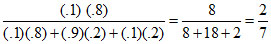 An instrument consists of two units. Each unit must function for the instrument to operate. The reliability of the first unit is 0.9 and that of the second unit is 0.8. The instrument is tested & fails. The probability that ″only the first unit failed & the second unit is sound″ is