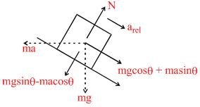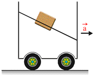 An open water tanker moving on a horizontal straight road has a cubical block of cork floating over its surface. If the tanker has an acceleration of a as shown in the figure, the acceleration of the cork w.r.t. container is (ignore viscosity) -