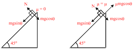 Starting from rest a body slides down a 45o inclined plane in twice the time it takes to slide down the same distance in the absence of friction. The co-efficient of friction between the body and the inclined plane is: