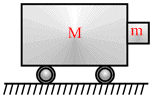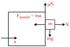 A cart of mass M has a block of mass m attached to it as shown in the figure. Co-efficient of friction between the block and cart is m. What is the minimum acceleration of the cart so that the block m does not fall?