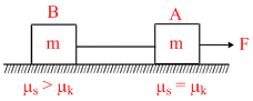 When μsmg ≤ F < μs2mg then friction on block B is static.