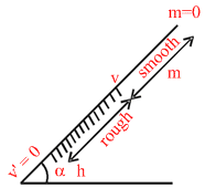 The upper portion of an inclined plane of inclination a is smooth and the lower portion is rough. A particle slides down from rest from the top and just comes to rest at the foot. If the ratio of the smooth length to rough length is m : n, the coefficient of friction is :