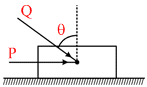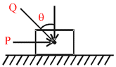 A block of mass m lying on a rough horizontal plane is acted upon by a horizontal force P and another force Q inclined an at an angle θ to the vertical. The minimum value of coefficient of friction between the block and the surface for which the block will remain in equilibrium is: