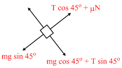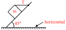 A block of mass 15 kg is resting on a rough inclined plane as shown in figure. The block is tied up by a horizontal string which has a tension of 50 N. The coefficient of friction between the surfaces of contact is (g = 10 m/s2)