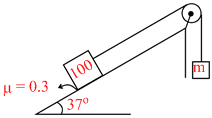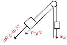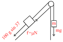 we get, 100 g sin 37 − m × (100 g) cos 37 − mg = 0