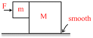 The two blocks, m = 10 kg and M = 50 kg are free to move as shown. The coefficient of static friction between the blocks is 0.5 and there is no friction between M and the ground. A minimum horizontal force F is applied to hold m against M that is equal to :