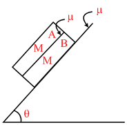 Two identical blocks of same masses are placed on a fixed wedge as shown in figure. Coefficient of friction between all the contact surfaces is μ. Choose the correct alternative