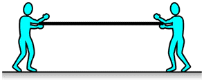 Two persons, pull each other through a massless rope in ′tug of war′ game. Who will win ?