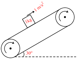 A.A block of mass 1 kg is stationary with respect to a conveyer belt that is accelerating with 1 m/s2 upwards at an angle of 30o as shown in figure. Which of the following is/are correct?