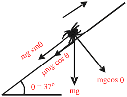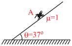 An insect of mass m, starts moving on a rough inclined surface from point A. As the surface is very sticky, the coefficient of friction between the insect and the incline is μm = 1. Assume that it can move in any direction ; up the incline or down the incline then