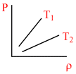 Figure shows graphs of pressure vs density for an ideal gas at two temperatures T1 and T2.