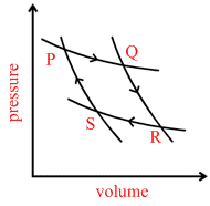 A fixed mass of gas undergoes the cycle of changes represented by PQRSP as shown in Figure. In some of the changes, work is done on the gas and in others, work is done by the gas. In which pair of the changes work is done on the gas?