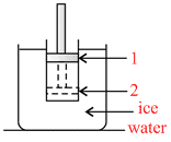 Figure shows a conducting cylinder containing gas and closed by a movable piston. The cylinder is submerged in an ice-water mixture. The piston is quickly pushed down from position (1) to position (2). The piston is held at position (2) until the gas is again at 0oC and then is slowly raised back to position (1).