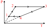 Three moles of an ideal monoatomic gas perform a cycle shown in figure. The gas temperatures in different states are T1 = 400 K, T2 = 800 K, T3 = 2400 K, and T4 = 1200 K. The work done by the gas during the cycle is :-