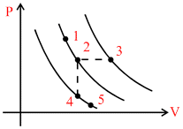 A certain gas is taken to the five states represented by dots in the graph. The plotted lines are isotherms. Order of the most probable speed vp of the molecules at these five states is :