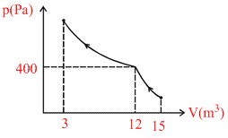 Curve in the figure shows an adiabatic compression of an ideal gas from 15 m3 to 12 m3, followed by an isothermal compression to a final volume of 3.0 m3. There are 2.0 moles of the gas. Total heat supplied to the gas is equal to : (ln2 = 0.693)