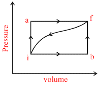 When a sample of a gas is taken from state i to state f along path ′iaf′, heat supplied to the gas is 50 cal and work done by the gas is 20 cal. If it is taken by path ′ibf′ , then heat supplied is 36 cal.
