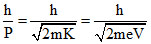 The wavelength λ of de Broglie waves associated with an electron (mass m, charge e) accelerated through a potential difference of V is given by (h is Planck′s constant) :