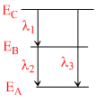 Energy levels A, B and C of a certain atom correspond to increasing values of energy, i.e. EA < EB < EC. If λ1, λ2 and λ3 are the wavelengths of radiations corresponding to transitions C to B, B to A and C to A respectively, which of the following relations is correct ?