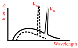 Given curve shows the intensity-wavelength relations of X-rays coming from two different Coolidge tubes A and B. The dark curve represents the relation for the tube A in which the potential difference between the target and the filament is VA and the atomic number of the target material is ZA . Similarly dotted curve is for tube B. These quantities are VB and ZB for the tube B. Then,