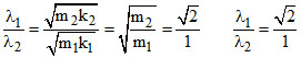Two particles of masses m and 2m have equal kinetic energies. Their de Broglie wavelengths are in the ratio of :