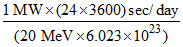 Assuming that about 20 MeV of energy is released per fusion reaction, 1H2 + 1H3 → 0n1 + 2He4, the mass of 1H2 consumed per day in a future fusion reactor of power 1 MW would be approximately