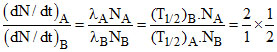 Two radioactive sources A and B initially contain equal number of radioactive atoms. Source A has a half-life of 1 hour and source B has a half-life of 2 hours. At the end of 2 hours, the ratio of the rate of disintegration of A to that of B is :