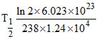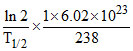 A U238 sample of mass 1.0 g emits alpha particles at the rate 1.24 × 104 particles per second. (NA = 6.023 × 1023)