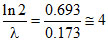 The decay constant of a radio active substance is 0.173 (years)-1. Therefore: