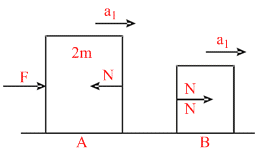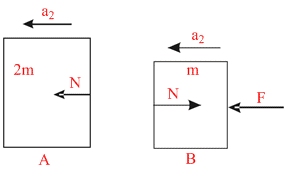 F − N = 2 ma, [Newton′s II law for block A]