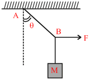 A mass M is suspended by a rope from a rigid support at A as shown in figure. Another rope is tied at the end B, and it is pulled horizontally with a force F. If the rope AB makes an angle θ with the vertical in equilibrium, then the tension in the string AB is :
