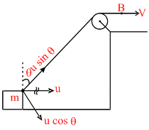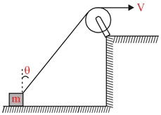 A block is dragged on smooth plane with the help of a rope which moves with velocity v. The horizontal velocity of the block is :