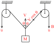 In the arrangement shown in fig. the ends P and Q of an unstretchable string move downwards with uniform speed U. Pulleys A and B are fixed. Mass M moves upwards with a speed.