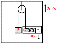 In the figure shown the velocity of lift is 2 m/s while string is winding on the motor shaft with velocity 2 m/s and block A is moving downwards with a velocity of 2 m/s, then find out the velocity of block B.