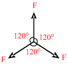 A body of mass M is acted upon by a force F and the acceleration produced is a. If three coplanar forces each equal to F and inclined to each other at 120o act on the same body and no other forces are acting. The acceleration produced will be: