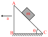 A block of mass m resting on a wedge of angle θ as shown in the figure. The wedge is given an acceleration a towards left. What is the minimum value of a due to external agent so that the mass m falls freely ?