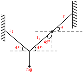 T1cos45o = T2cos45o