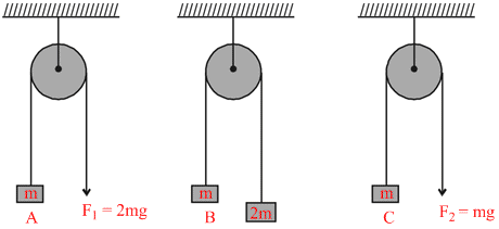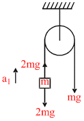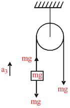 In the figure, the blocks A, B and C of mass m each have acceleration a1, a2 and a3 respectively. F1 and F2 are external forces of magnitudes 2 mg and mg respectively .