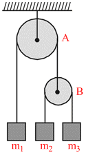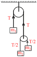 In the arrangement shown in figure , pulleys are mass less and frictionless and threads are light and inextensible. Block of mass m1 will remain at rest if :