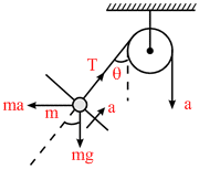 Applying Newton′s law along string ⇒ T − m