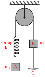 In the system shown in the figure m1 > m2 . System is held at rest by thread BC . Just after the thread BC is burnt :