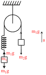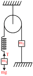 when thred is burnt, tension in spring remains same = m1g.