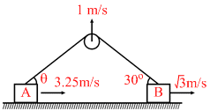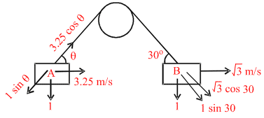 In the figure shown, find out the value of θ at this instant [assume string to be tight]