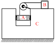In the system shown in figure mA = 4m, mB = 3m and mC = 8m. Friction is absent everywhere. String is light and inextensible. If the system is released from rest find the acceleration of block B
