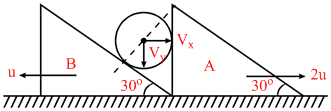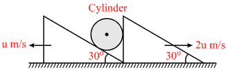 System is shown in the figure. Assume that cylinder remains in contact with the two wedges. The velocity of cylinder is -