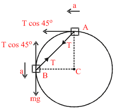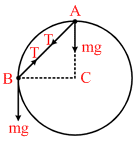 Objects A and B each of mass m are connected by light inextensible cord. They are constrained to move on a frictionless ring in a vertical plane as shown in figure. The objects are released from rest at the positions shown. The tension in the cord just after release will be