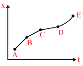 Figure shows the displacement of a particle going along the x-axis as a function of time :