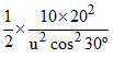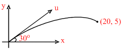 A ball is thrown upward at an angle of 30o with the horizontal and lands on the top edge of a building that is 20 m away. The top edge is 5m above the throwing point. The initial speed of the ball in metre/second is (take g = 10 m/s2) :
