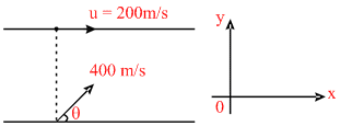 A plane flying horizontally at a height of 1500 m with a velocity of 200 ms-1 passes directly overhead an antiaircraft gun. Then the angle with the horizontal at which the gun should be fired for the shell with a muzzle velocity of 400 m s-1 to hit the plane, is -