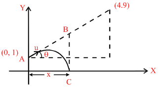 A particle is projected from a point (0, 1) on Y-axis (assume + Y direction vertically upwards) aiming towards a point (4, 9). It fell on ground along x axis in 1 sec.